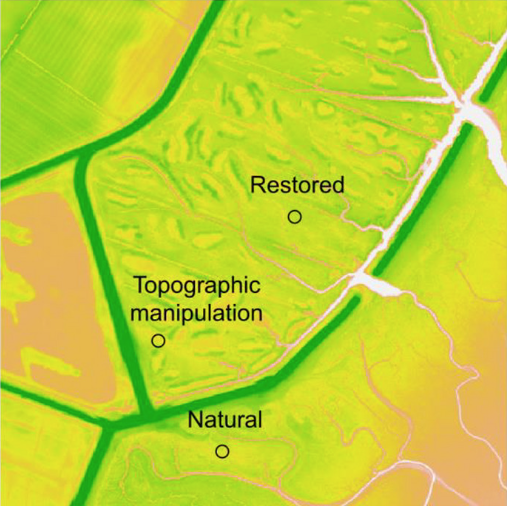 Restored saltmarshes lack the topographic diversity found in natural habitat
