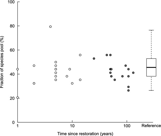 - Halophytic species colonized individual realignment sites rapidly, attaining species richness similar to nearby reference marshes after 1 year. Nevertheless, the community composition of MR sites was significantly different from reference sites, with early-successional species remaining dominant, even on the high marsh.